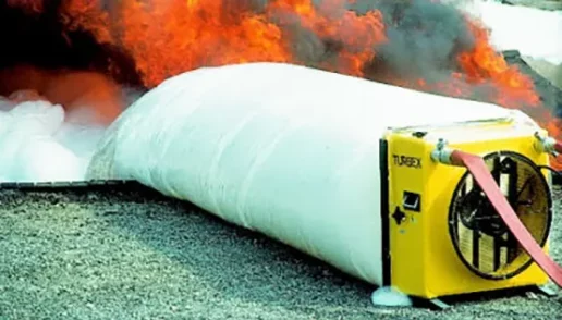 Angus HI-COMBAT Turbex High Expansion Foam generators are designed to produce large capacities of high expansion foam, up to 200 cubic metres (7,000 cu.ft) per minute and inaccessible spaces with minimal water consumption and subsequently minimal water damage.
