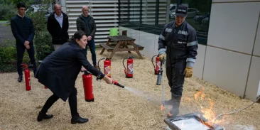 Une deuxième partie pratique où les participants utilisent les moyens de lutte sur un départ de feu (réel ou simulé selon les possibilités offertes par l’établissement).