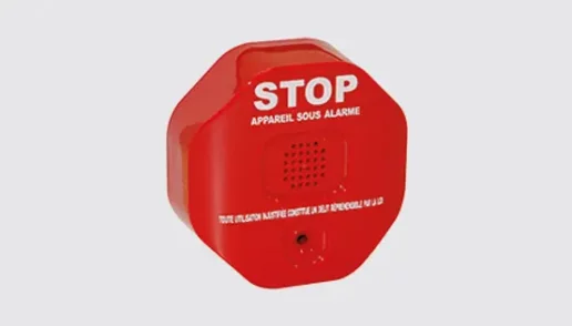L’alarme extincteur permet de contrôler la présence d’un extincteur relié à l’alarme par un câble. Quand l’extincteur est retiré de son socle, le câble sort de l’alarme qui émet une alarme.