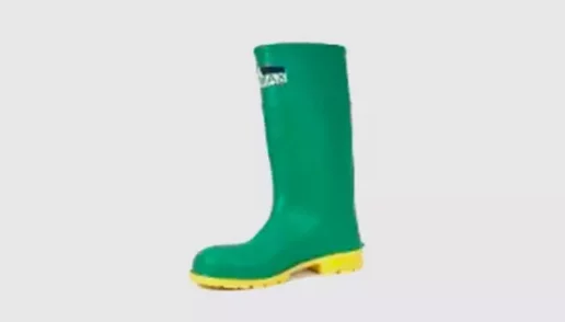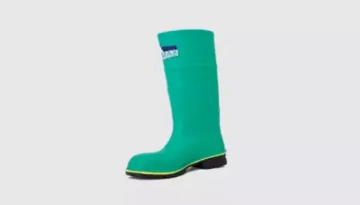 A chemically protective anti-static boot with an integral steel toe cap and vulcanized rubber sole for superior slip resistance.