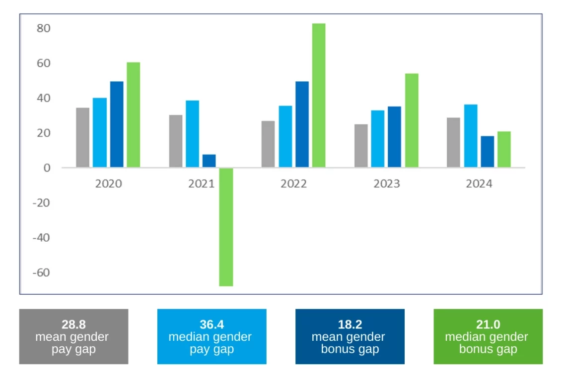 The gender pay gap represents the difference in average earnings between men and women over a specific period, regardless of job role or seniority.